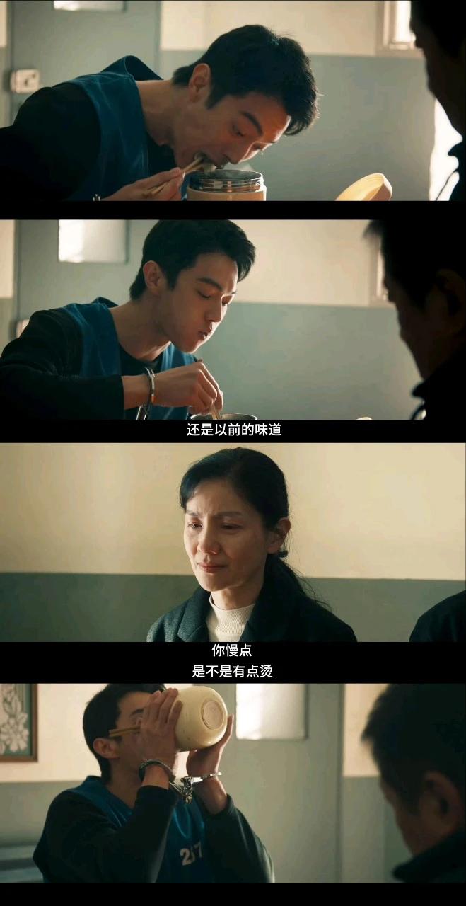 最让人破防的,是陈辉临刑前和父母吃的最后一顿“断头饭”。他狼吞虎咽地吃着饺子,脸上故作轻松,还笑着安慰父母,可眼泪却忍不住混着饺子咽下去。